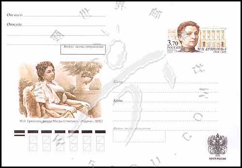 女演员M·叶尔莫洛娃诞生150周年,肖像及早期电影剧照等邮资封1全