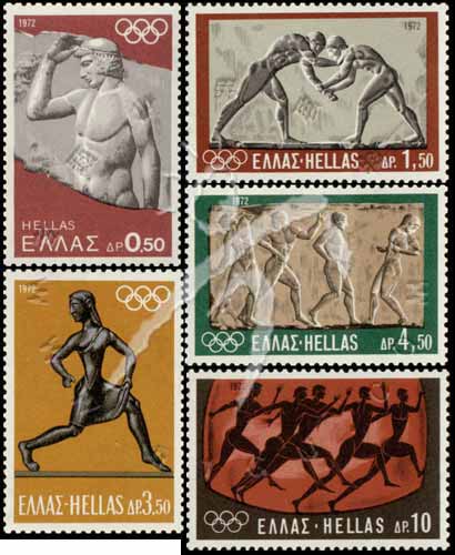 慕尼黑第20届奥运会,前480年戴桂冠的运动员、前500年浮雕《角力者》、青铜器斯巴达妇女赛跑、双耳酒罐画《青年长跑者》5全