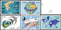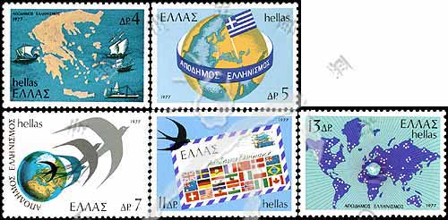 侨居海外的希腊人,希地图和船只、带有希国旗的地球、地球和燕子、带多国国旗的信和燕子、世界地图显示希腊人在国外各地的分布5全