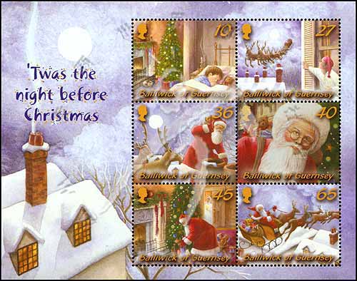 圣诞节,平安夜圣诞老人送礼物小版张(6票)