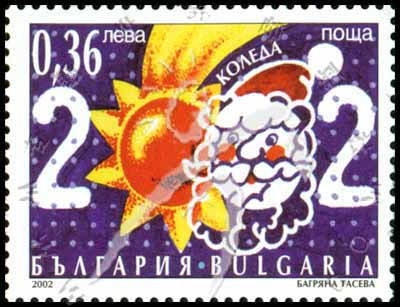 圣诞节,太阳、圣诞老人头像和数字组成的2002 1全