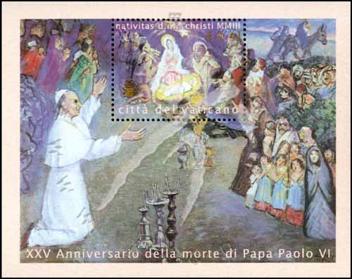圣诞节,宗教画耶稣诞生及教宗若望保罗六世做祈祷小型张
