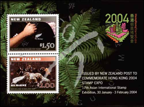 新西兰橄榄球运动百年,橄榄球比赛及球队服上的银蕨标志香港第17届亚洲邮展加字小全张(2票)