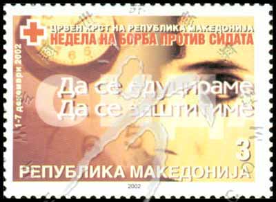 红十字会防治爱滋病运动,宣传语、眼睛、钟等邮政税票1全