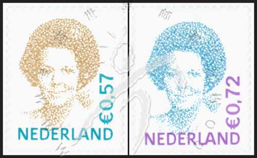 普票,荷兰女王贝娅特丽克丝不干胶自贴票2全