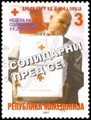 红十字团结一致抗击疾病运动,红十字会旗与搬运救济物品工人邮政税票1全