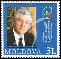 参加欧盟会议的摩尔多瓦总统弗拉蒂米尔·沃罗宁与欧盟徽志1全