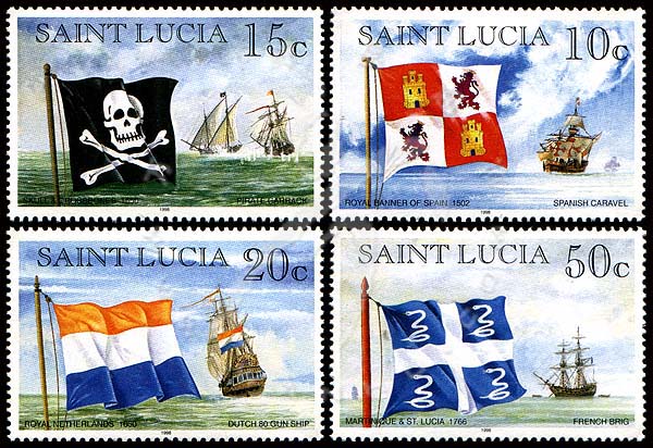 西班牙、德国、圣卢西亚等早期航海帆船及国旗、海盗旗4全