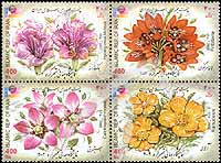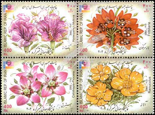 韩国2002世界邮展,药用植物黑良菪、贝母及毛莨等4方联