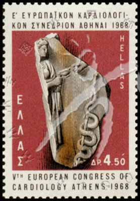 雅典第5届欧洲心脏病大会,神殿浅浮雕残片医神艾斯库累普1全