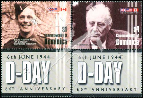 诺曼底登陆60周年,富兰克林·罗斯福等2全(各带1枚附票)