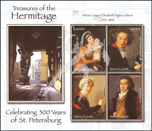 圣彼得堡艾米塔吉博物馆建立300周年,馆藏18世纪法国女画家伊丽莎白·维热·勒布伦经典画作、自画像及雕塑小版张(4票)