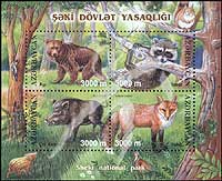 舍基国家公园,棕熊、浣熊、野猪及赤狐小全张(4票)
