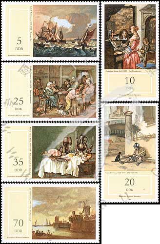 什未林国家博物馆藏画,L.巴克胡耶森《海上怒涛》、F.米里斯《家庭音乐会》、C.法勃里丘斯《守夜人》、A.勃鲁威尔《农民聚会》等6全