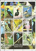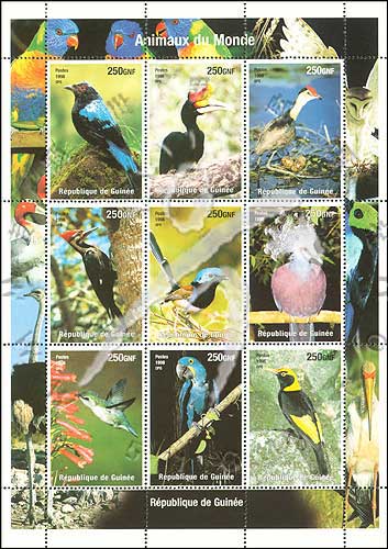 鸟类,啄木鸟、孔雀及鹦鹉等小版张(9票)(我社已售缺)