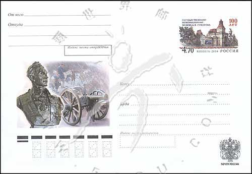 苏沃洛夫将军纪念馆建成百年,外景、苏沃洛夫将军雕像及大炮邮资封1全