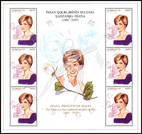戴安娜王妃逝世1周年系列二,戴妃经典照片及白玫瑰小版张(6票)