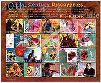 20世纪人类进化的发现,脚的进化、穴居人头骨、原始人用的石斧、汤恩孩童的化石等小版张(20票)