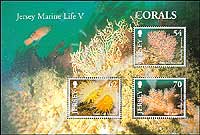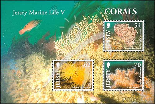海洋生物,粉海扇珊瑚、日落珊瑚及红手指珊瑚小全张(3票)