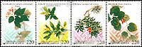 传统染料用植物系列四,海州常山、桅子花、红豆杉及菝葜4联