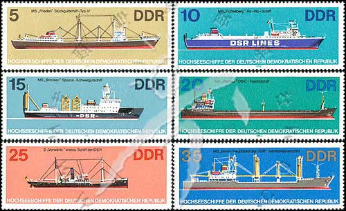 远洋货轮,“和平号”散货轮、“菲希泰尔伯格号”货轮、“布洛肯号”载重货轮、“魏玛号”货轮及东德航运公司第一艘商船“前进号”等6全