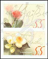 德邮政系列邮票,玫瑰及山茶花不干胶自贴票2联