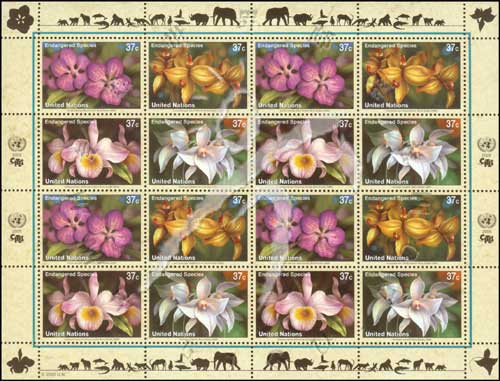 邮票介绍:濒危物种,万带兰及冬抱柱兰等小版张(4套共16票)
