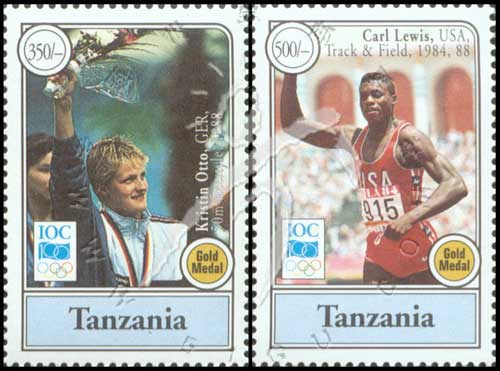奥运会金牌获得者,1988年50米自由泳冠军德国克莉丝汀·奥托及短跑冠军美国卡尔·刘易斯2全