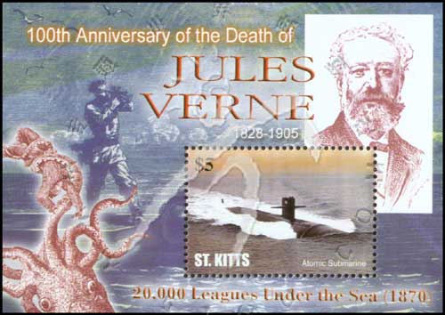 科幻和探险小说之父—儒勒·凡尔纳(1828-1905)逝世百年,作品《海底两万里》及核潜艇小型张