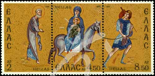 Sc#1120 圣诞节,《入埃及》连续图案3联