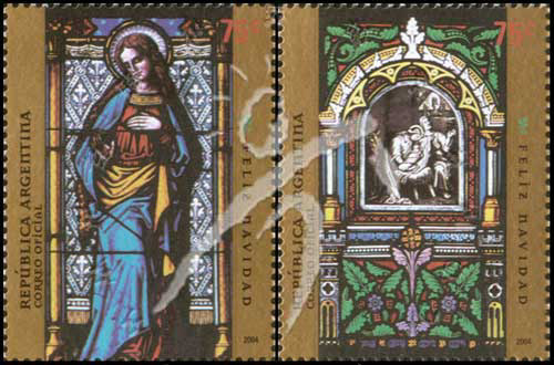 圣诞节,教堂彩色玻璃窗画圣母玛丽亚等2全