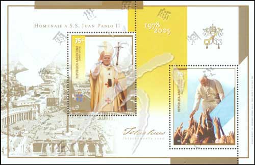 教皇约翰·保罗二世逝世,徽志及挥手场景等小全张(2票)