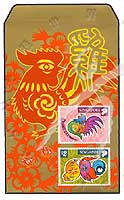 鸡年生肖,金鸡迎春及恩爱的公母鸡贺年红包卡