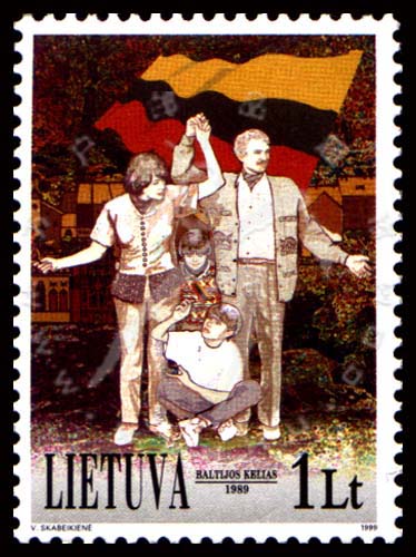 波罗的海之路(联结三国首都的人体链)10周年,国旗及家庭1全(与拉托维亚、爱沙尼亚联合发行)