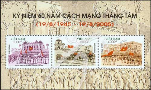 八月革命胜利60周年,国旗、建筑及人群等小全张(3票)