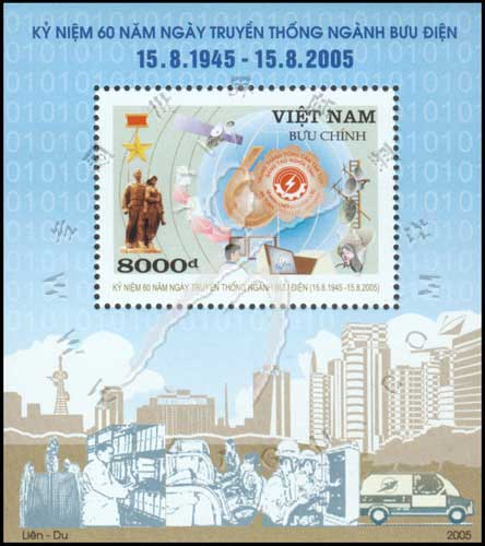 邮政通讯部60周年,徽志、雕塑及通讯设备等小型张