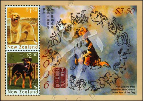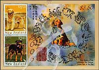 狗年生肖,黄金猎犬、牧羊犬及中国十二生肖图小全张(2票)(我社已售缺)