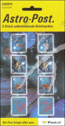 黄道十二宫,金牛座、双子座、巨蟹座、星宿图及鸡年生肖不干胶自贴小版张(2套共8票)