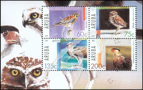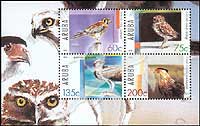 猛禽,美洲红隼、鱼鹰、凤头卡拉鹰及穴鸮小全张(4票)