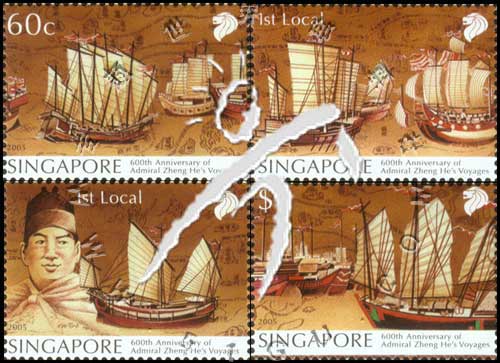 郑和下西洋600周年,郑和肖像及航海帆船等4全