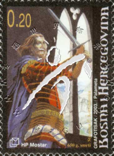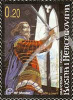 波斯尼亚国家创始人斯蒂芬二世科特罗曼尼克逝世650周年,手拿剑的戎装像1全