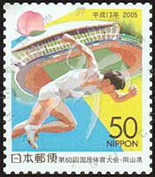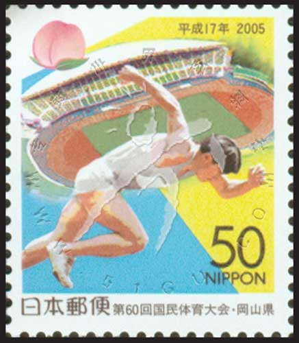 故乡邮票—第60届国民体育大会,桃太郎体育场、运动员及冈山特产白桃1全(我社已售缺)