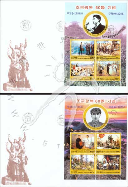 解放战争胜利60周年,金日成、金贞淑及早期革命活动等小全张首日封2全