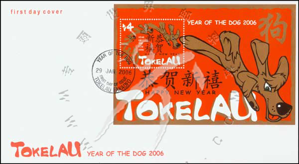 狗年生肖,卡通狗及中文“恭贺新禧”小型张首日封