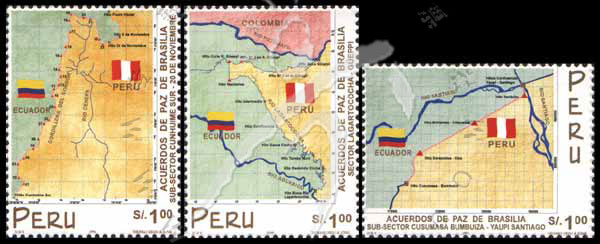巴西利亚和平协议,秘鲁和厄瓜多尔国旗、地图等3全
