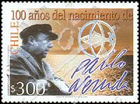 智利当代诗人、诺贝尔文学奖得主巴勃鲁·聂鲁达诞生百年,徽志及肖像1全