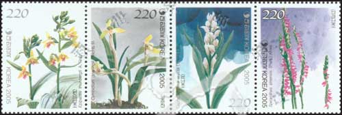 兰花系列五,尖叶火烧兰、报春花、银兰及绶草香味邮票4联