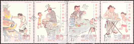 昔日生活风情(三),白粥油炸鬼、豆腐花、猪肠粉、造木屐、补沙煲、打铁桶及收买佬等8联