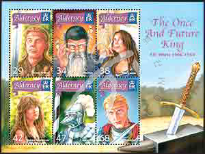 英小说家怀特诞生百年,由其小说改编的动画片《亚瑟王》中人物亚瑟王、魔法师梅林、苏格兰王后莫高司、吉娜薇、武士兰士诺等小全张(6票)
