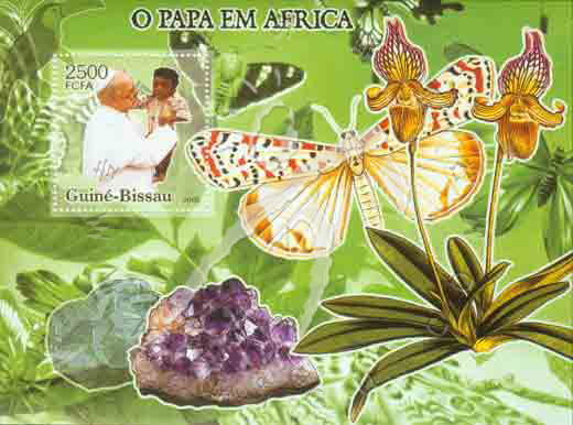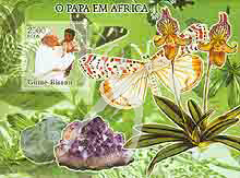 罗马教皇约翰·保罗二世(1920-2005)逝世,教皇手抱非洲儿童、兰花及蝴蝶小型张
